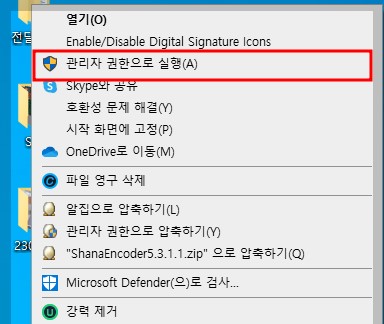 다운로드가 모두 끝났다면 바탕화면에 생긴 샤나 아이콘을 우측 마우스로 눌러 관리자 권한으로 실행을 해주세요