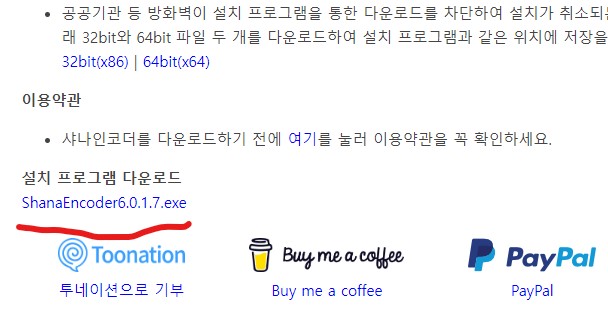 넘어간 페이지에서 마우스 스크롤을 제일 아래로 내리면 shanaencoder 6.0.1.7이 첨부된 파일을 눌러 주세요