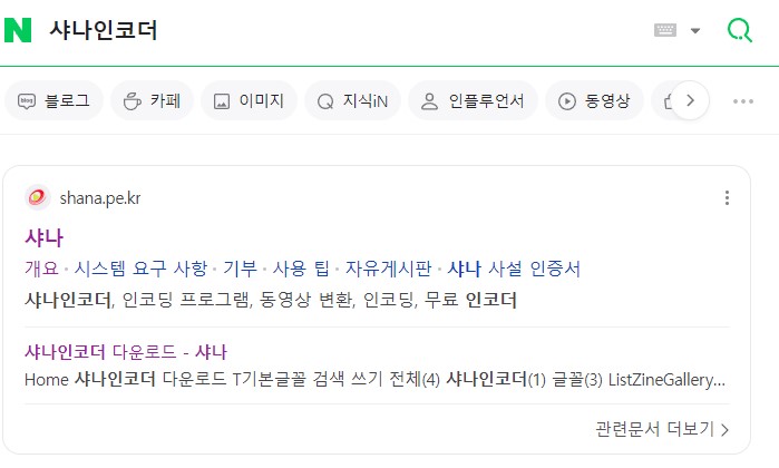 네이버에 샤나 인코더를 검색 하여 제일 상단에 나오는 사이트가 샤나 인코더 공식 사이트 입니다.