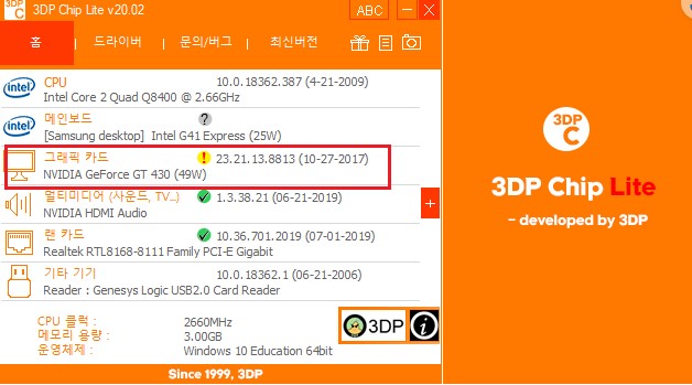 해당 글을 읽고 [3DP CHIP을 다운로드] 해보세요