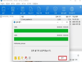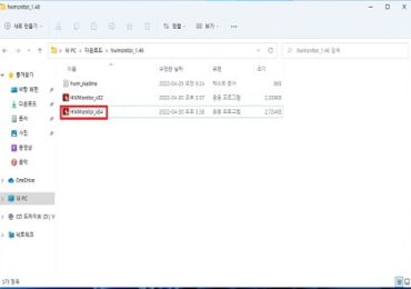 가장 밑에 있는 HW MONITER를 더블 클릭 하여 실행 해주고 압축 파일 풀기를 진행 해주세요.