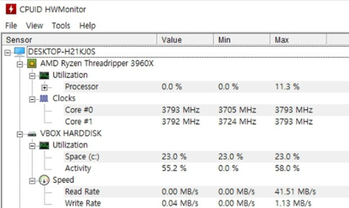 - 마더 보드 : 전압, 팬의 속도 등을 모니터링 할 수 있습니다